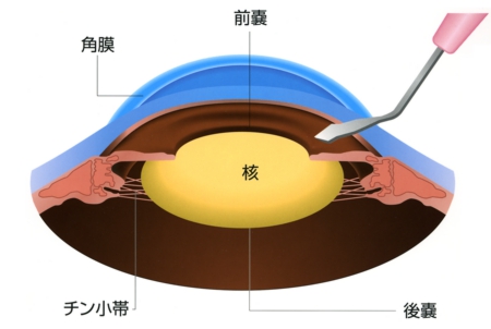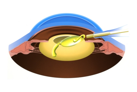 白内障は主に手術によって治療が行われます。現在の白内障手術は小さな切開から濁った水晶体を超音波で破いて取り出し、その代わりに人工の水晶体である眼内レンズを入れる方法で行われます。白内障手術は技術の進歩とともに、その安全性も向上してきました。